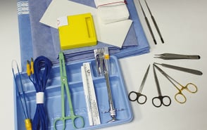 Tilpass prosedyrepakkene med et bredt utvalg av produkter, inkludert neuro-pads (kirurgiske svamper for nevrokirurgi), ligaturklips, suturstrips (hudlukningsstrimler) og hudmarkeringspenner.