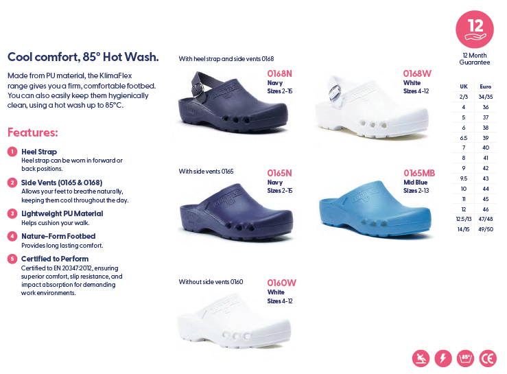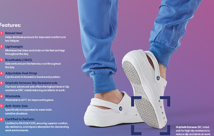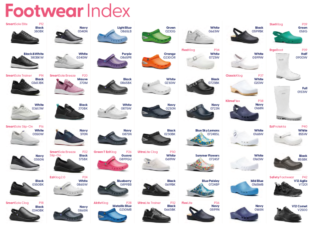Vi tilbyr slitesterke og hygieniske arbeidsko utviklet spesielt for helsepersonell i krevende arbeidsmiljøer. Sortimentet består hovedsakelig av lette plast- og clogs-modeller som er enkle å rengjøre, kan vaskes ved høye temperaturer og i enkelte tilfeller steriliseres. Skoene er designet for høy komfort, god støtte og sklisikkerhet – perfekt for lange arbeidsdager på sykehus, klinikker og operasjonsavdelinger.